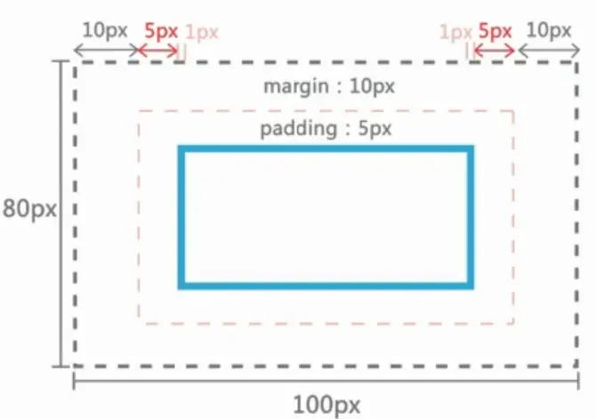 所谓盒子模型就是把HTML页面中的元素看作是一个矩形的盒子,也就是一个盛装内容的容器。每个矩形都由元素的内容(content)、内边距(padding)、边框(border)和外边距(margin)组成。