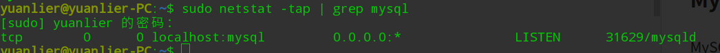 输入sudo netstat -tap | grep mysql,如果有显示就说明MySQL已经运行起来了
