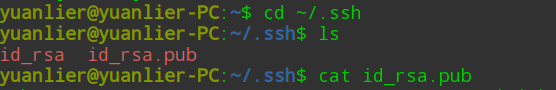 查看公匙 进入 ~/.ssh,将 id_rsa.pub 中的内容复制下来