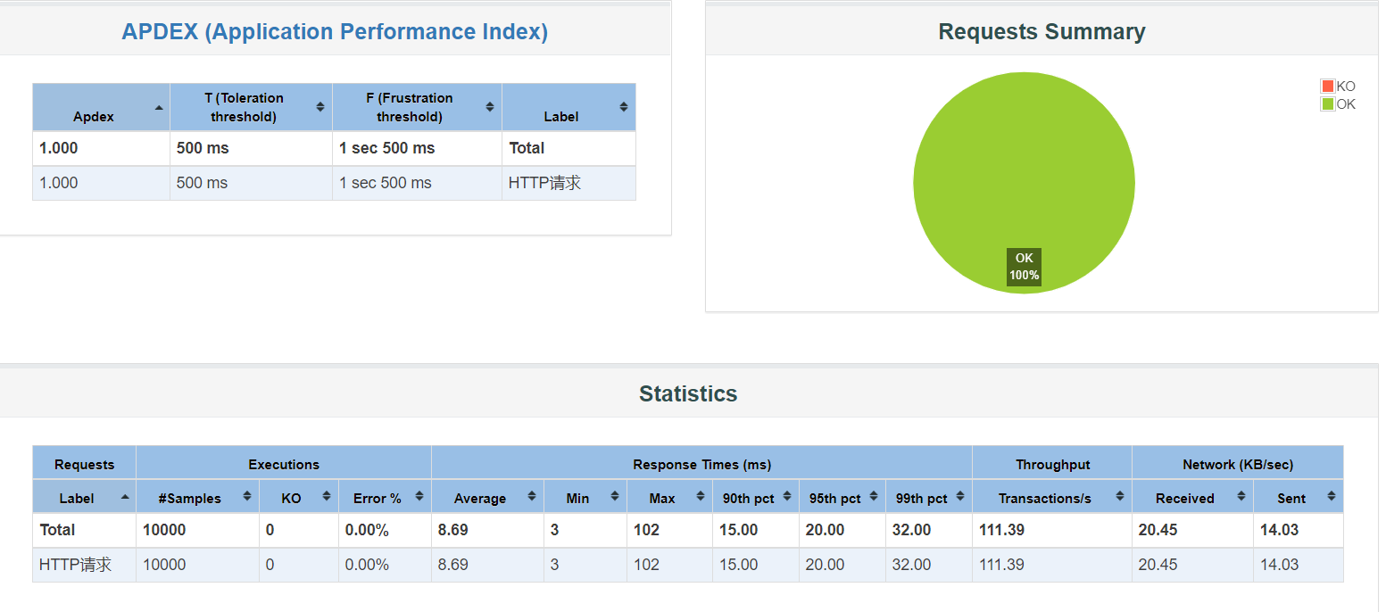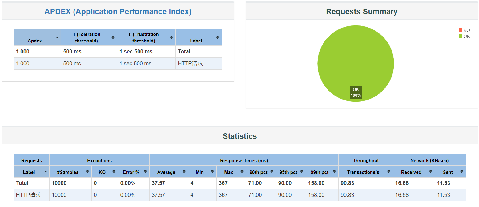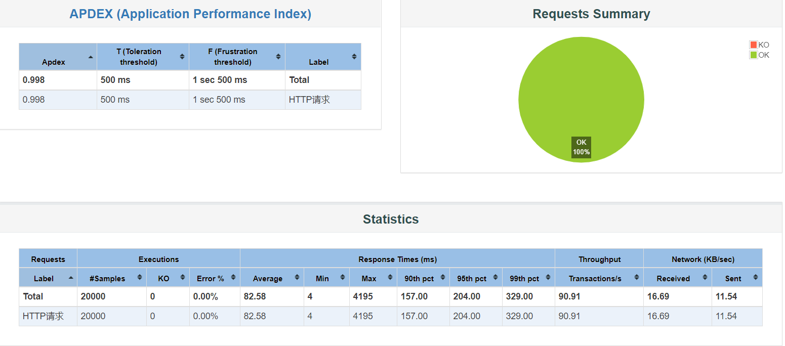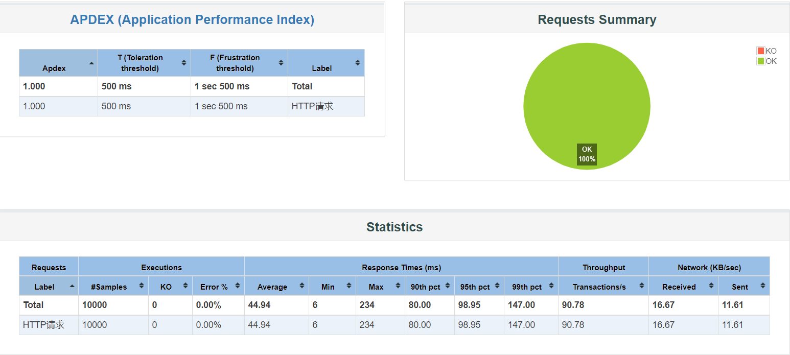 - 测试压力:1 x 10000、100 x 100、200 x 100、500 x 100
