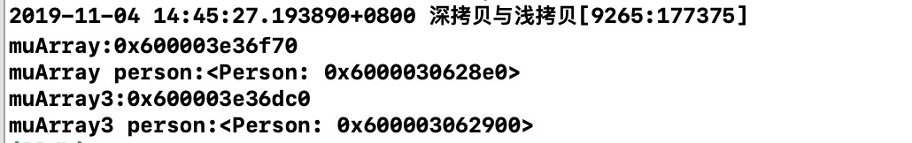 NSLog(@"\nmuArray:%p\nmuArray person:%@\nmuArray3:%p\nmuArray3 person:%@\n",muArray,muArray.firstObject,muArray3,muArray3.firstObject);