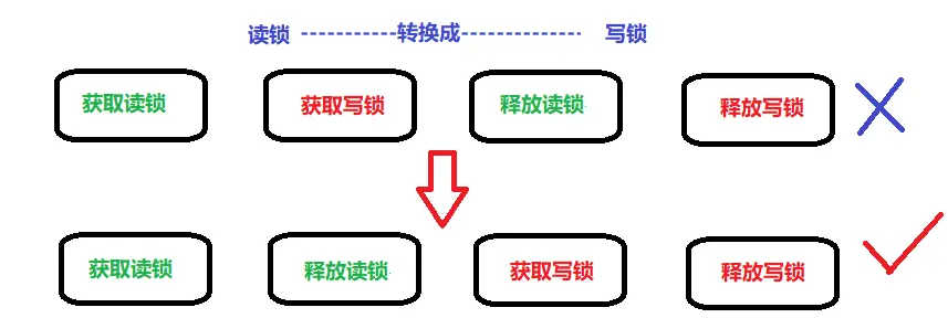 线程获取读锁是不能直接升级为写入锁的。需要释放所有读取锁,才可获取写锁,