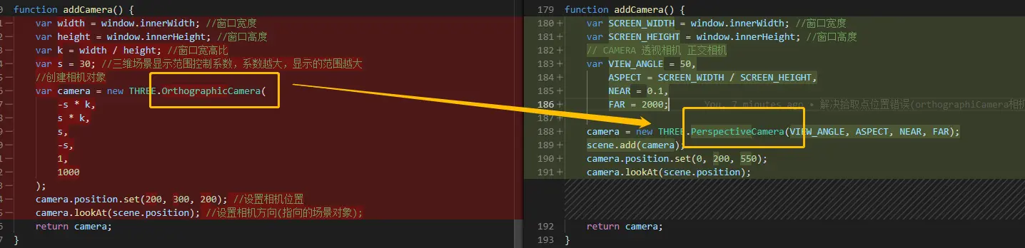 Raycaster拾取相交对象坐标的一个注意点 telveWang 2019-11-04 174 阅读1分钟 把正交相机换成透视相机,否则拾取点位置有误差,具体原因稍后分析补充. 同样的问题遇到两次了.