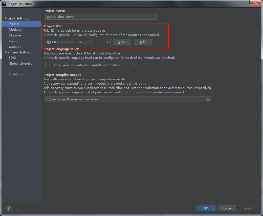 1. 打开intelij IDE , file-project structure,project中设置sdk的版本.