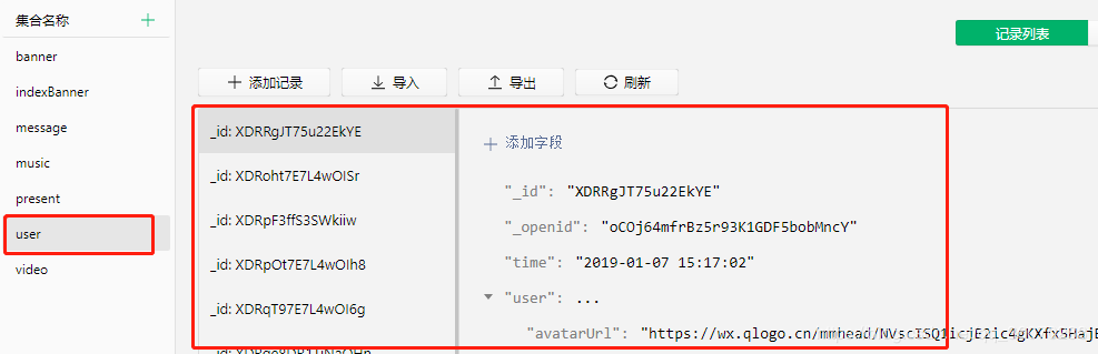 注意: 可以看出_id和_openid是添加完自动生成的属性