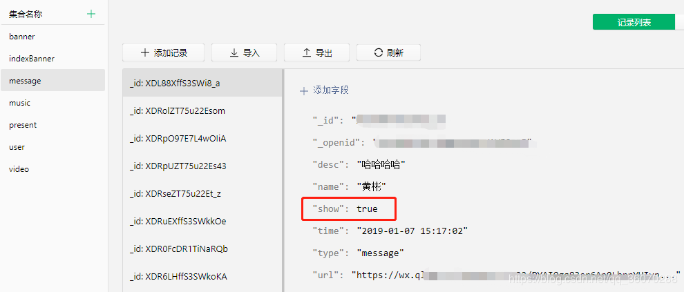 const message = db.collection('message') // 这里的id是拿到当前操作项对应的id,