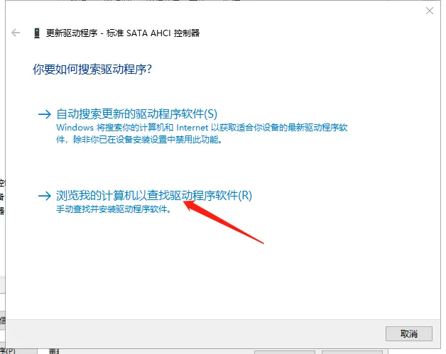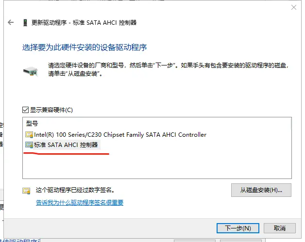 点击“在 Windows 更新上...”,这时候就会弹出一些选项。我们选择“标准 AHCI 模式“