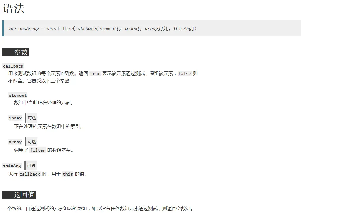 filter 为数组中的每个元素调用一次 callback 函数,并利用所有使得 callback 返回 true 或等价于 true 的值的元素创建一个新数组。
