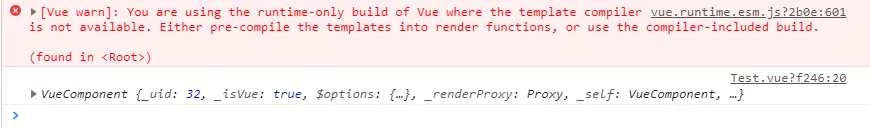 [Vue warn]: You are using the runtime-only build of Vue where the template compiler is not available. Either pre-compile the templates into render functions, or use the compiler-included build.