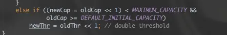 - MAXIMUM_CAPACITY: 哈希表最大容量,一般情况下只要内存够用,哈希表不会出现问题。