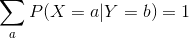 条件概率表示在条件Y=b成立的情况下,X=a的概率,记作P(X=a|Y=b)或P(a|b),它具有如下性质: “在条件Y=b下X的条件分布”也是一种“X的概率分布”,因此穷举X的可取值之后,所有这些值对应的概率之和为1即: