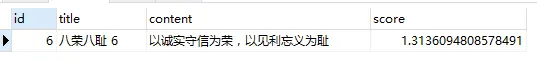 select *, MATCH (content) AGAINST ('诚实') as score