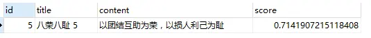 3)查询 title 或者 content 中包含“为荣”的记录,查询语句如下: