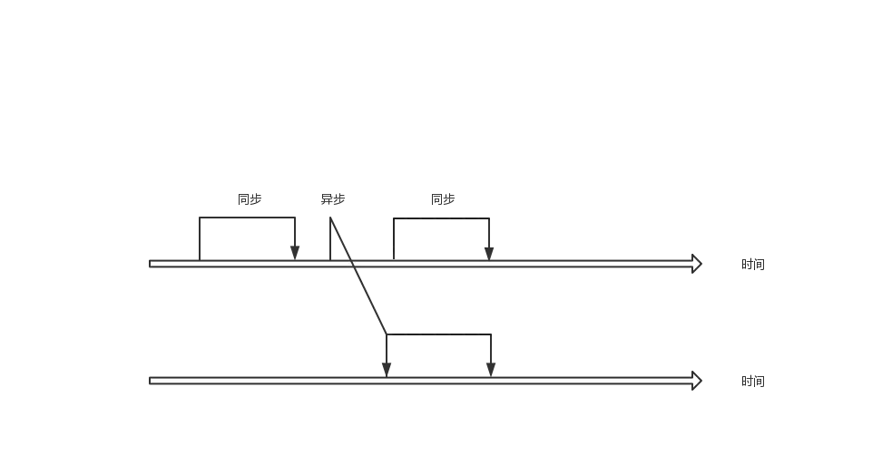 同步和异步通常用来形容一次方法调用。同步调用一旦开始,调用者必须等到方法返回后才能进行后续操作;而异步调用更像是一次消息传递,调用的方法会立刻返回,调用者就可以进行后续操作。如图所示,同步调用会阻碍当前线程的后续步骤,而异步调用则会将操作放到另一个线程执行,不会阻碍调用者的后续工作。从调用者的角度来看,异步操作似乎是瞬间完成的。