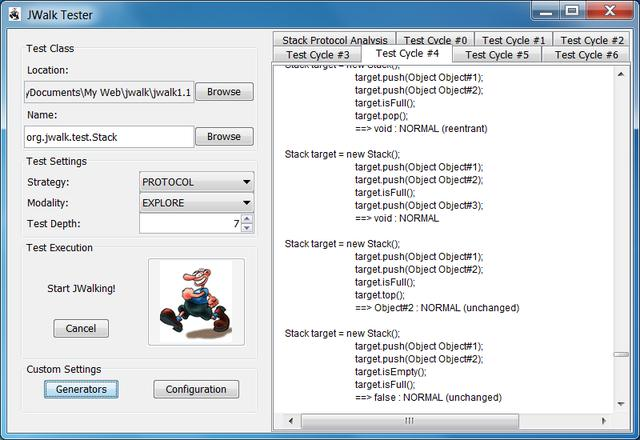 JWalkTester工具对任何由程序员提供的编译的Java类执行任何测试。它能够通过静态和动态分析以及来自程序员的提示来测试懒惰Lazy规范的一致性。