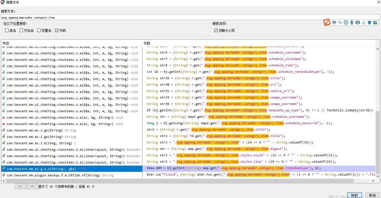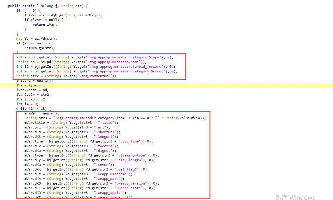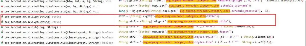 msg.appmsg.mmreader.category.item,之后我们一个个分析,看到下面这个部分,跟进去