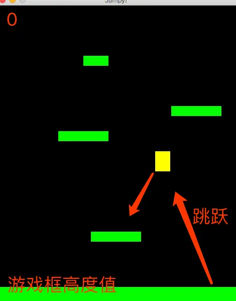 在开始写之前,需要理清一个概念,要实现移动效果,并不是游戏界面整体向下移动了,而是游戏框中的元素整体向后移动的,具体而言就是玩家类向下移动了一部分具体,对应的平台元素也向下移动了一段距离。