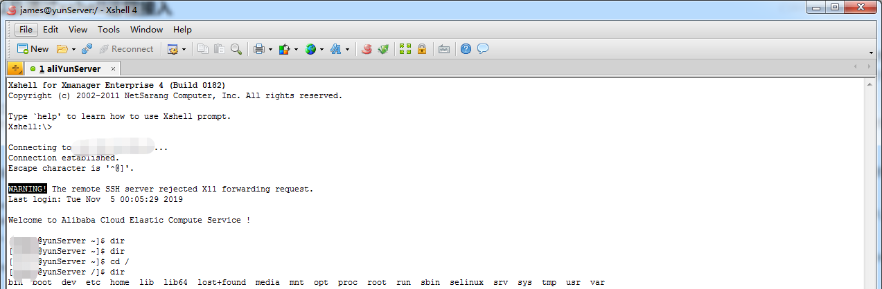Last login: Tue Nov 5 22:25:03 2019 from 1xx.1xx.1xx.1xx