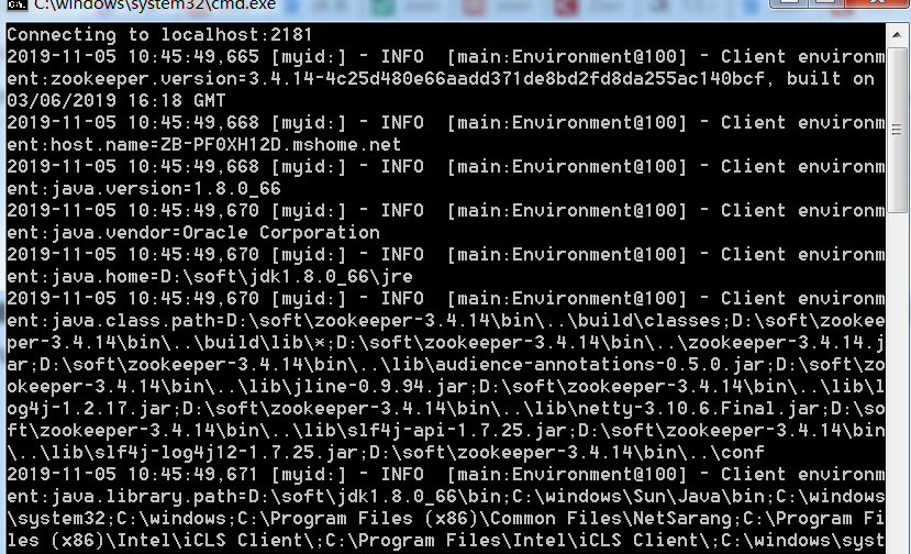 末尾出现watched event stated:syncConnected type:none path null,无监控节点,代表启动成功,执行客户端命令即可