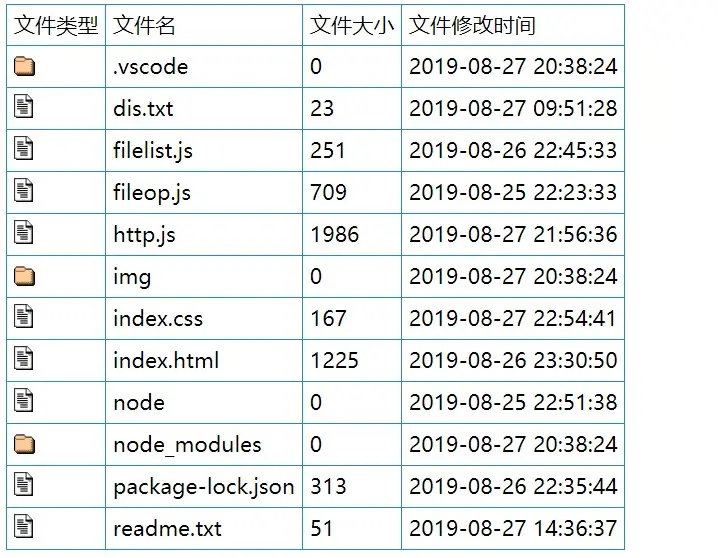 本案例使用node来实现服务器功能,在浏览器地址栏输入localhost:8080时,显示根目录下的所有文件和文件夹