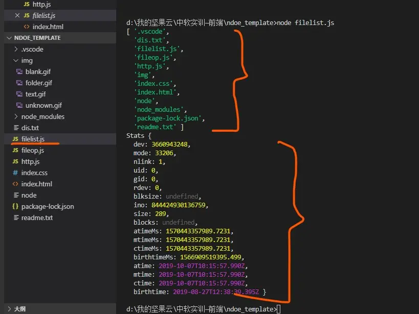 怎么样获取文件名,文件大小,文件的创建时间,我新建了一个文件filelist.js来探究