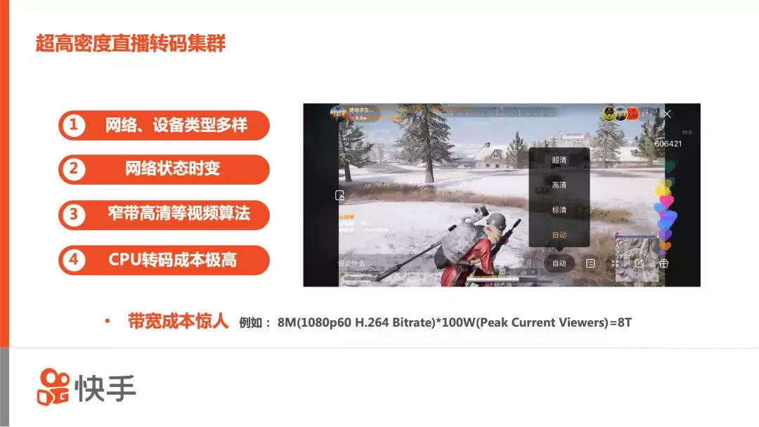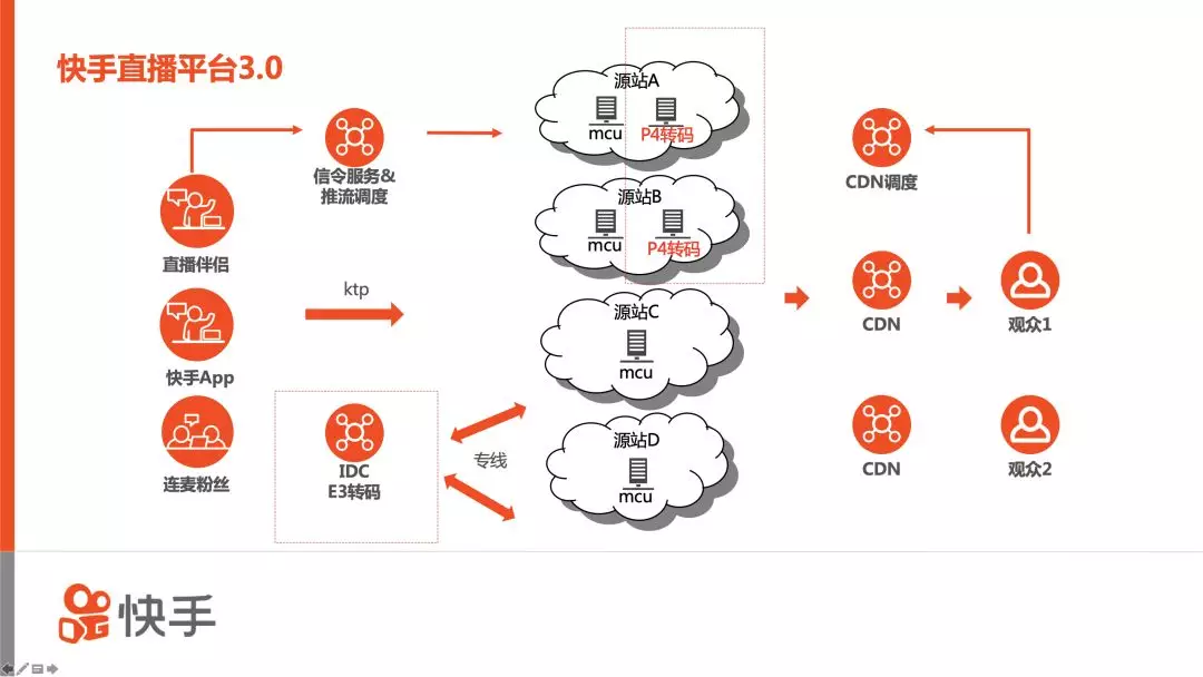 接下来介绍的快手直播平台3.0,这个版本的重点则是快手的直播伴侣、转码集群和游戏多码率自适应。