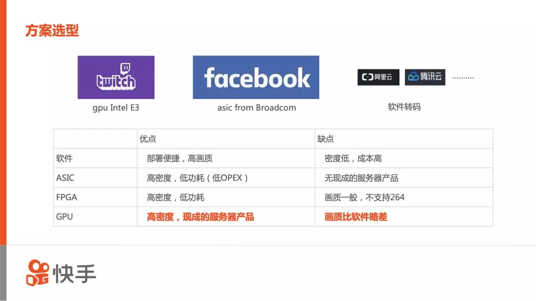 总体来说,软件方案质量最好,成本非常高;基于ASIC或FPGA的方案,转码质量目前无法达到我们的要求;基于GPU的方案,虽然画质比软件略差,但有高密度、低成本、产品方案成熟的优点。
