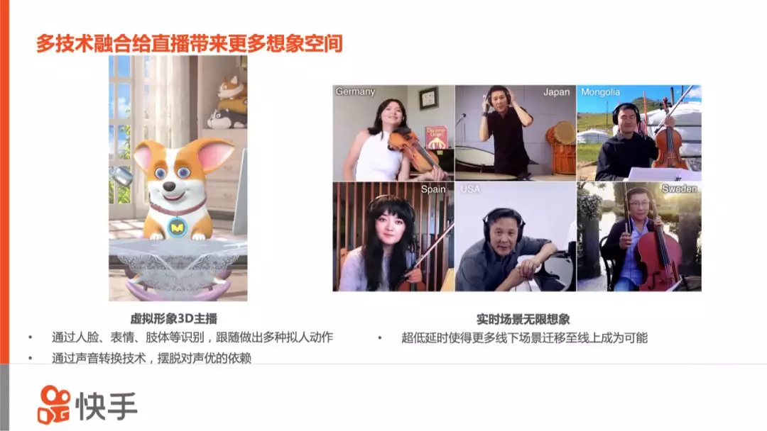 同时,我们也在自研通过声音转换技术摆脱对声优的依赖,使得快手任何一个人的声音都可以转化到目标的声音上。我们也希望这些技术能早日成熟,提升整个虚拟直播的体验。