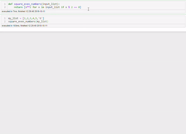 1. 有一个函数,它将一个列表作为输入,并平方所有偶数。