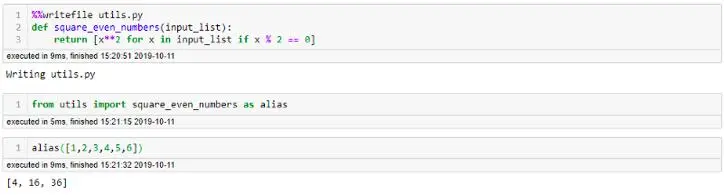 这是本文的最后一个命令。当已经在notebook中写了一些复杂的函数或其类别,而想要将其从notebook中分离存到文件中去时,这个命令非常有用。只需为函数或其类别添加前置%%writefile,然后添加文件名储存即可: