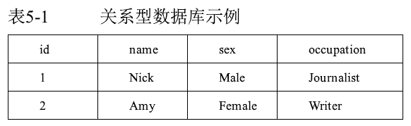 第一小节介绍关系型数据库的时候给出了一个示例表格(表 5-1),如下: