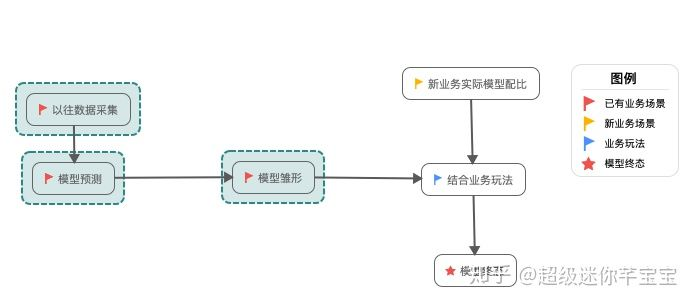 - 已有业务场景:采集以往数据并做处理,作为预测数据,形成一个模型雏形,结合新的业务玩法,行程已有业务的模型;