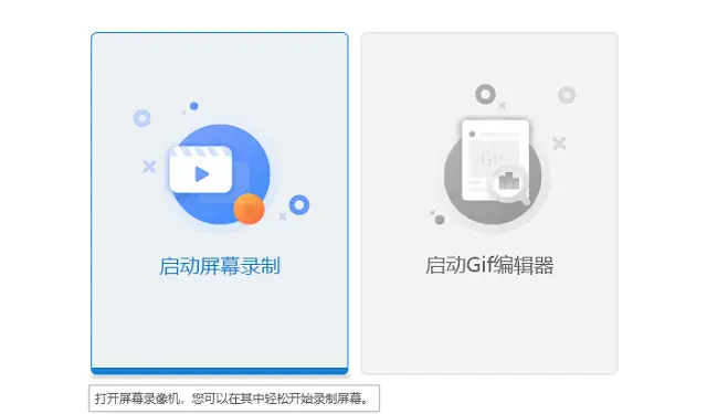 2、下载完成之后打开这个工具,工具里面有两个功能,启动屏幕录制功能和启动GIF编辑器。要自己制作一个GIF的话就启动屏幕录制功能。