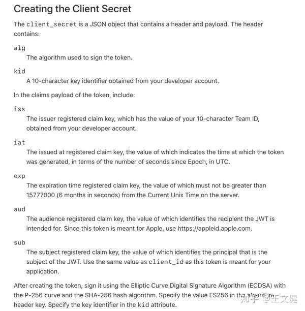 在此过程中,最重要的就是client_secret参数,为生成JWT,官网文档对JWT生成的相关条件如下图,可跳转去连接