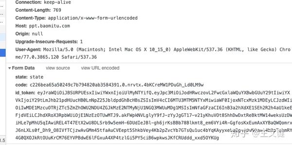 当用户给予授权后,apple服务器将发起一个POST请求至当时设置的redirectURI,同时附上一个授权码code,id_token可用于刷新token,这里的id_token字段只有通过验证后才会有,首次请求并没有这个字段,首次验证通过后再次登录可直接通过解析这个id_token来获得用户唯一标识,这里首次登录,我们将只有code和state,如下图