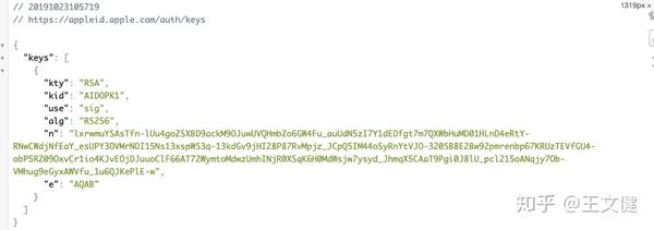其中我们用到的verifyIdToken方法就是对该id_token解密,首先我们需要通过apple提供GET https://appleid.apple.com/auth/keys接口获取公钥,跳转去链接