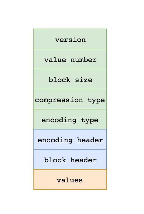 - 编码的header (以差分编码为例,header中会记录版本号,base value,每个value用几个bit表示)