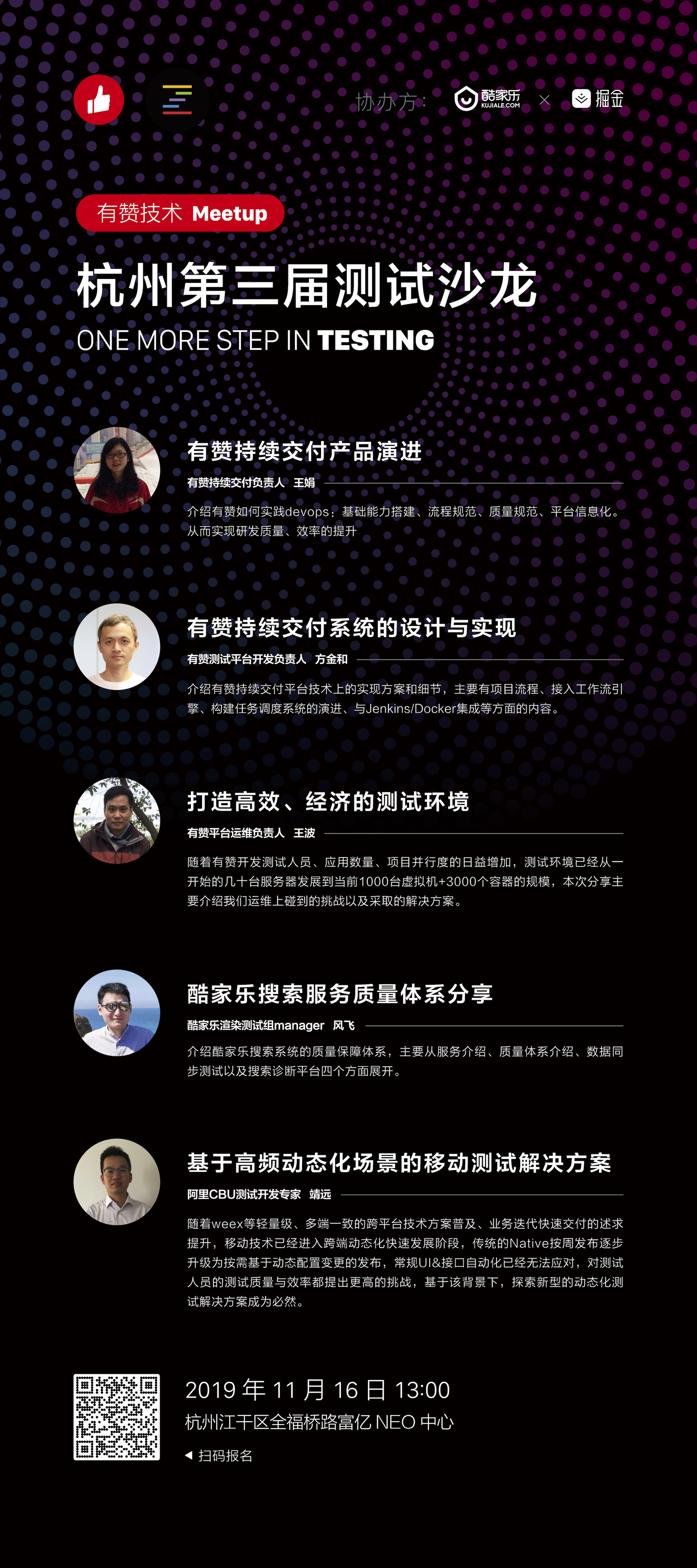哈喽小伙伴们,还记得有赞去年联合酷家乐、蘑菇街、51信用卡联合举办的“杭州第二届测试沙龙”吗?