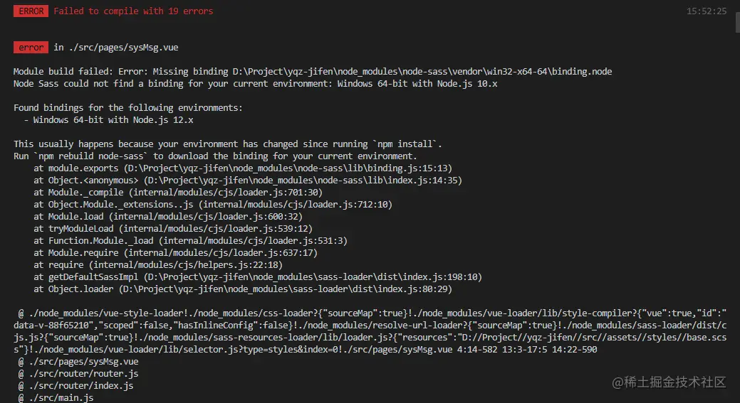 问题描述:之前项目是node-v10.1.5搭的,更新后的Node版本为12.0。报错信息如下: