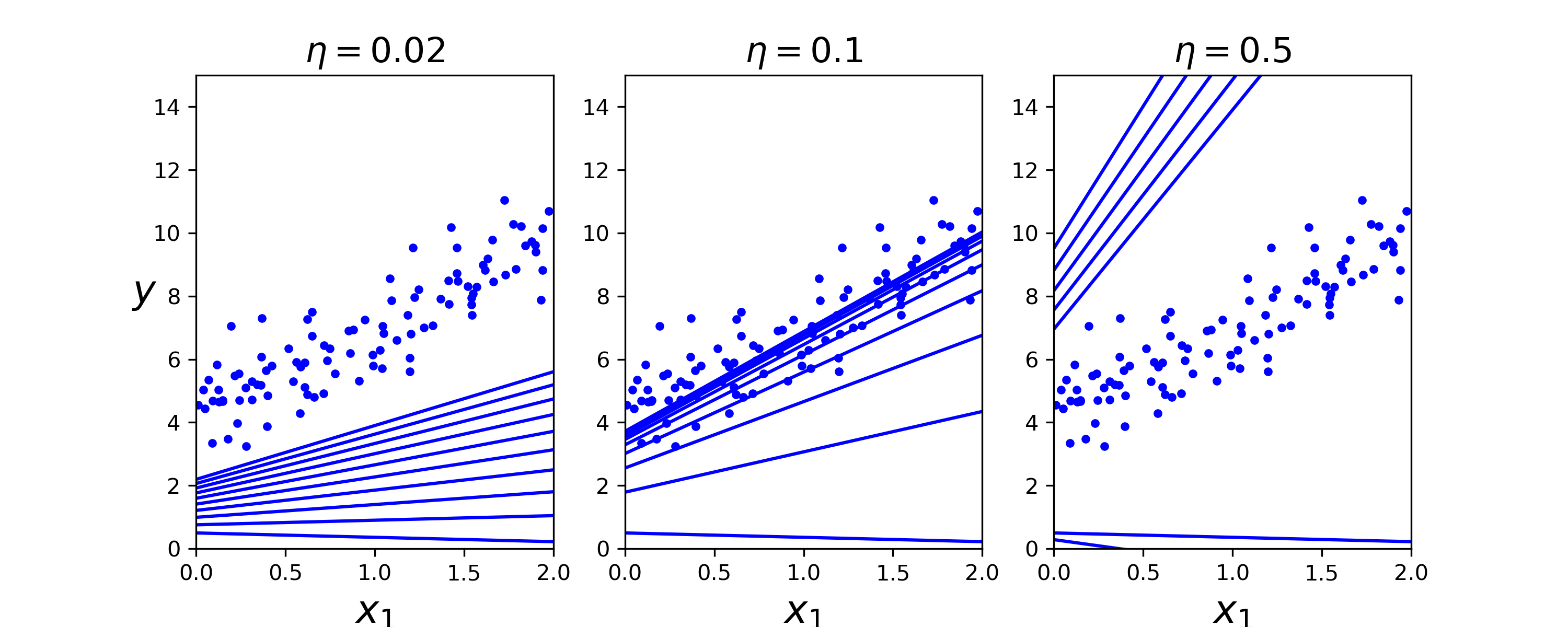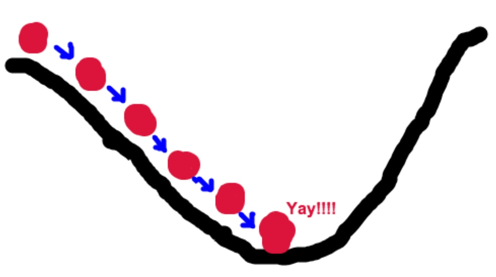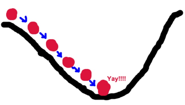 在这种就情况下,我们也可以假设此时周围的陡峭程度我们无法用肉眼来测量,需要一个复杂的工具来帮助我们测量,恰巧的是此人正好拥有测量最陡峭方向的能力。因此,这个人每走一段距离,都需要一段时间来测量所在位置最陡峭的方向,这是比较耗时的。那么为了在太阳下山之前到达山底,就要尽可能的减少测量方向的次数。这是一个两难的选择,如果测量的频繁,可以保证下山的方向是绝对正确的,但又非常耗时,如果测量的过少,又有偏离轨道的风险。所以需要找到一个合适的测量方向的频率,来确保下山的方向不错误,同时又不至于耗时太多!