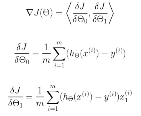 我们可以根据代价函数看到,代价函数中的变量有两个,所以是一个多变量的梯度下降问题,求解出代价函数的梯度,也就是分别对两个变量进行微分