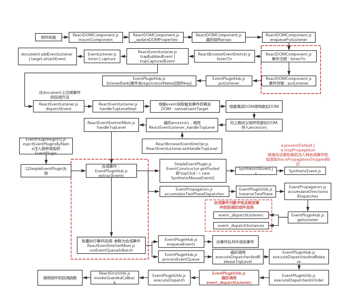 react原理解析三:事件系统 彩色的雨 2019-11-05 685 阅读1分钟 react版本:15.6.2 对组件挂载不是很熟的,可以先看下react原理解析一:组件挂载流程图 参考文章:React源码解析(四):事件系统