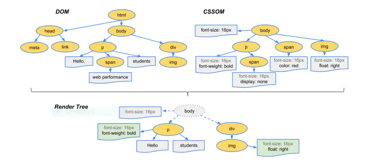 (3)将两棵树合并成一颗渲染树,Render tree;