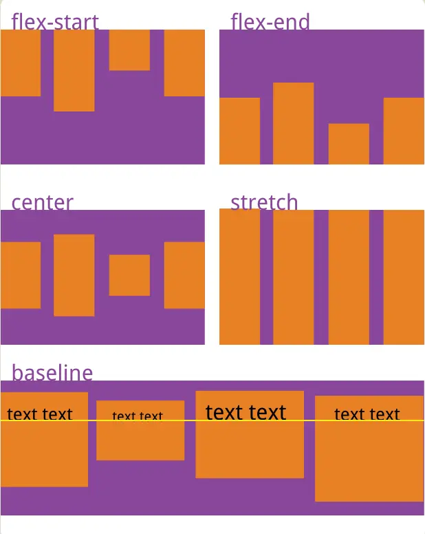 flex-start:与交叉轴的起点对齐。(贴着顶部)