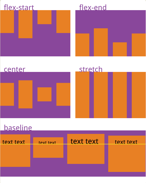 stretch(默认):如果项目未设置高度或者设为auto,将沾满整个容器高度
