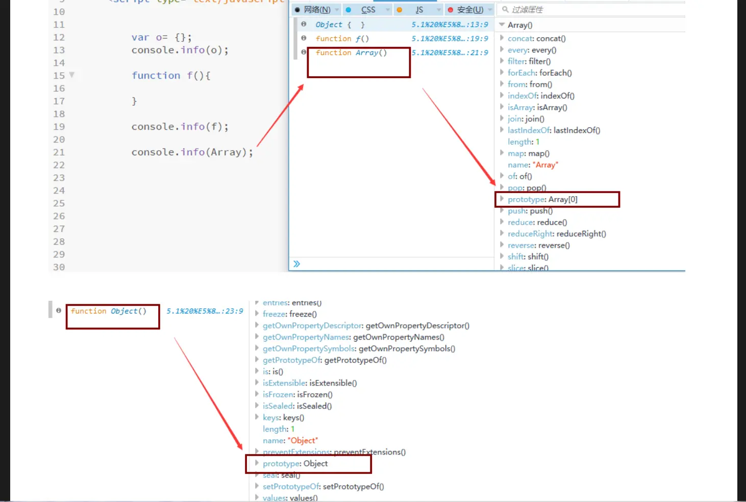 函数的prototype属性是一个对象----原型对象,这个对象中有有很对方法(根据函数的不同,里面的方法不同),但一定有一个方法constructor,这方法 constructor 指向 这个函数本身,如: