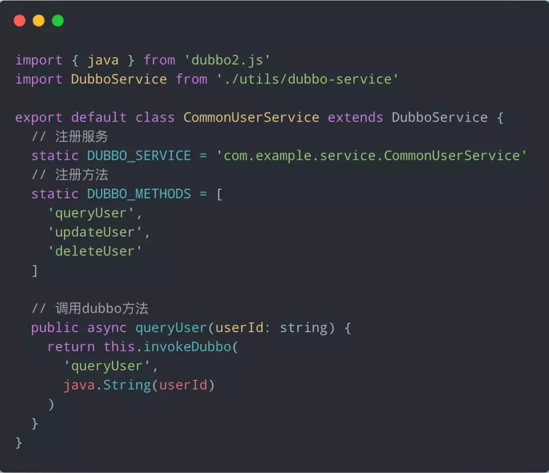 我们使用了社区提供的 dubbo2.js 进行 Dubbo 服务的调用,并且做了一些封装来优化发开体验。