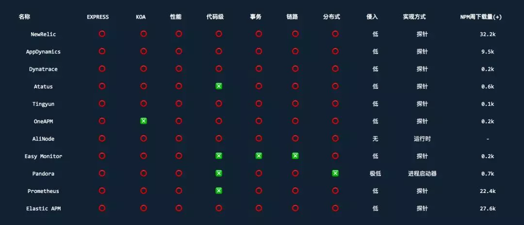 我们对比了常用的 APM 产品,从代码侵入、实现方式、成熟度、数据安全性以及性能等各个方面进行对比。