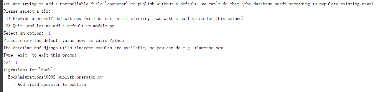 我之前创建的admin账号是我模型迁移之前设置了默认的值1,但是我新创建的admin2没有operator的值,所以我们还要创建一个类方法去编写