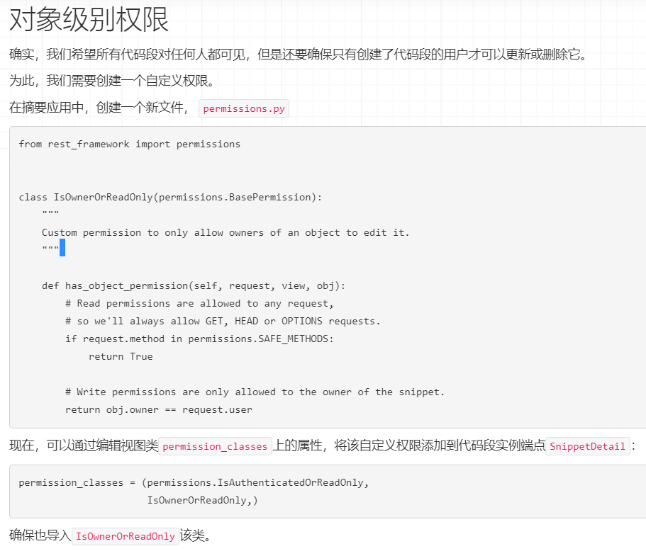 依照文档的说法,我们要新建一个permissions.py文件